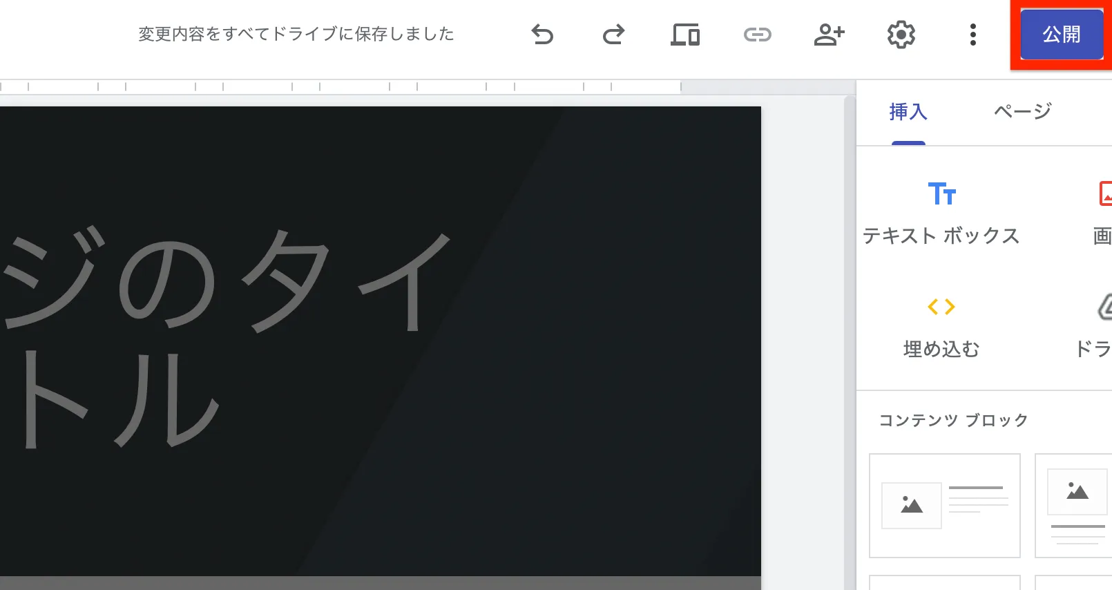 1. 公開したいサイトの編集画面で,右上の「公開」を押してください.